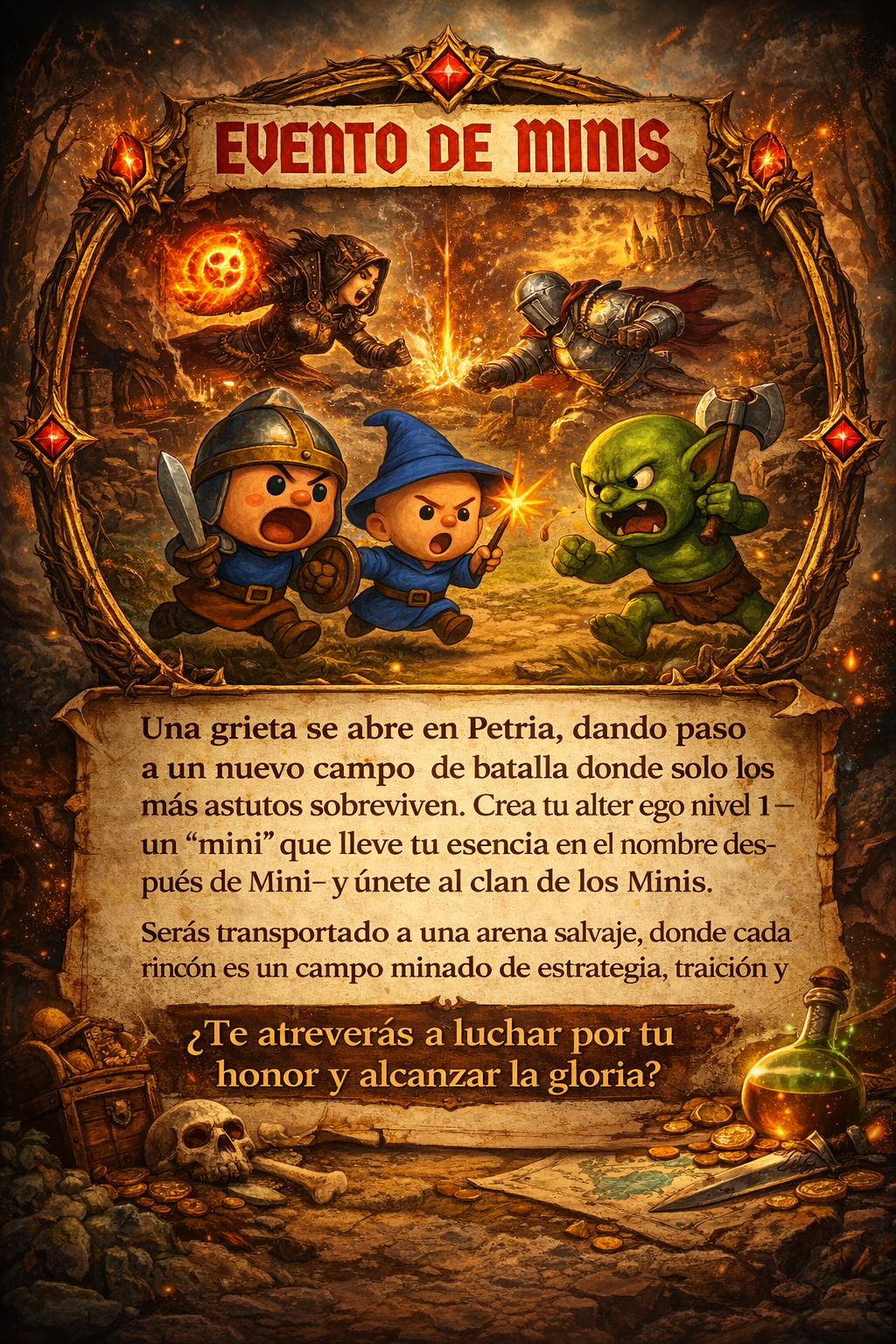 En Petria, la gloria y el caos van de la mano, cada evento pone a prueba a los más valientes. Prepárate, aventurero: los desafíos no esperan.